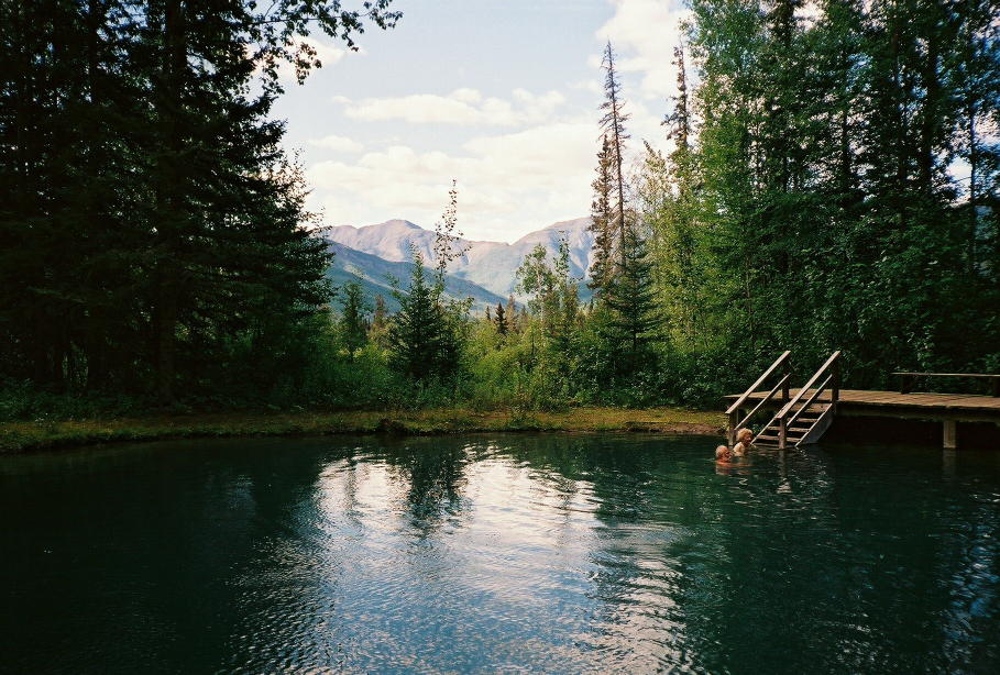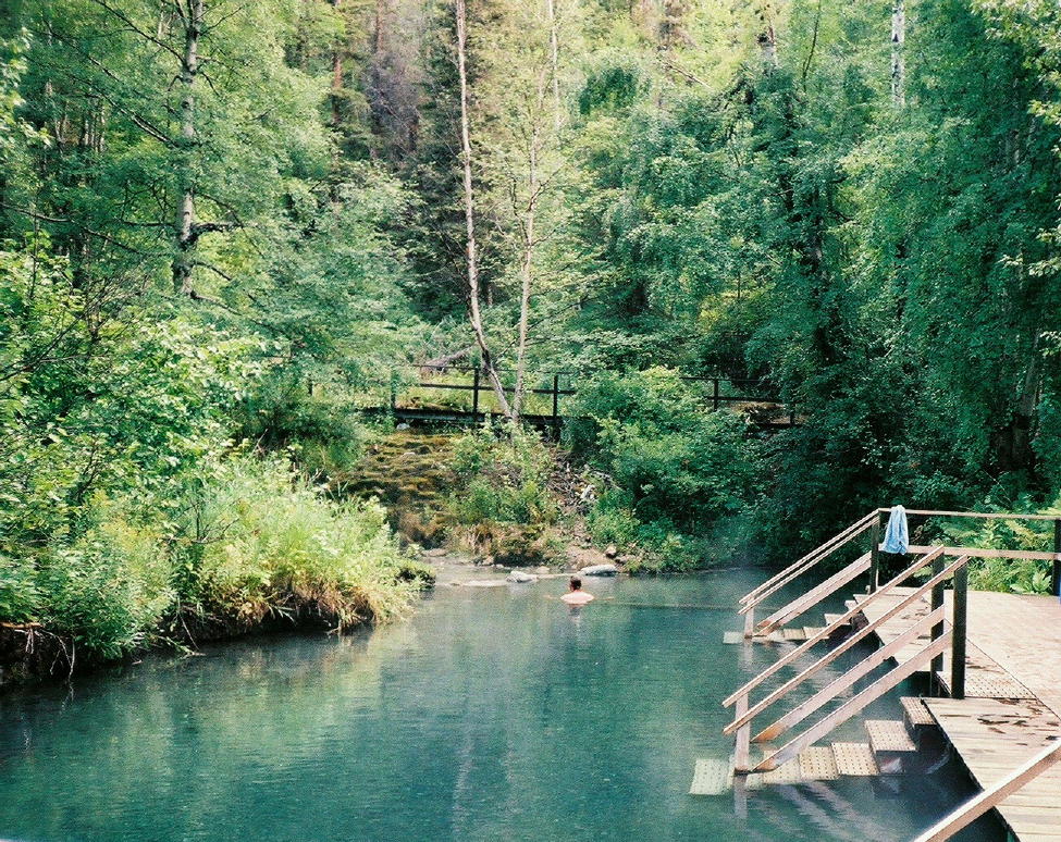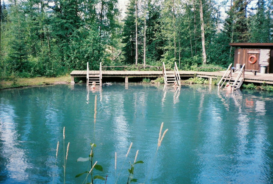 After leaving Toad River I got very cold riding through the mountains. The next stop was at the Liard River hot springs - the 120 degree F water sure felt good. I spent an hour soaking in it before continuing.