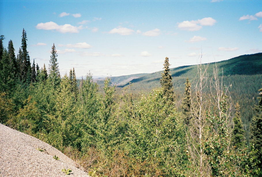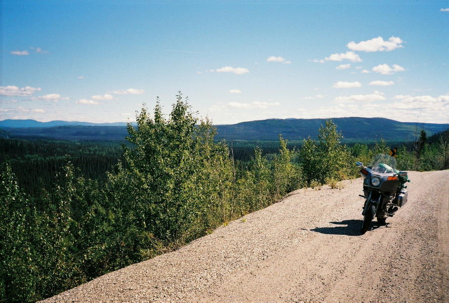 The road just south of Lower Post was simply awful; it was a 20 mile stretch of freshly graded three inch deep mud. This made the bike difficult to control, even more so since all the gear made the bike somewhat top heavy. For much of this stretch my top speed was only 10 mph.