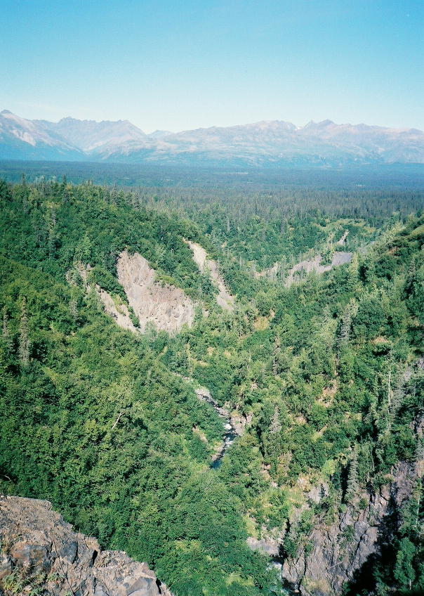 There are two scenic roadside pullouts on the highway south of Denali