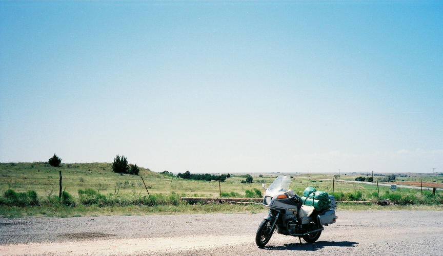 It was long after dark when I stopped riding for the day. All night long the temperature never went below 100 degrees F and everything felt sticky. The tent window flaps were all opened in an attempt to catch what little breeze there was; I slept on top of the sleeping bag.