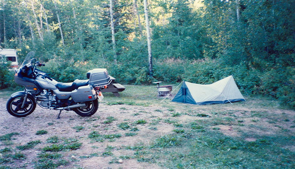 At the park, I camped next to a group of five high-schoolers (two couples about 16 years old and a boy about 13) from Grande Prairie, AB. They had decided that morning to go camping and brought with them six cases (!) of beer that they iced down in a plastic garbage can. They were definitely having a good time and invited me to join them, which I did. I turned in about 1 AM and they were still going strong; I fell fast asleep. I awoke about 7 AM, made breakfast, and broke camp. They were all asleep after a hard night of partying.