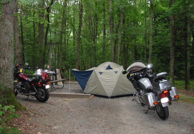 We rode the Parkway north to Buena Vista, VA. Then we went westward to Watoga State Park, WV, where we camped again. It rained heavily that night and most of the next day.
