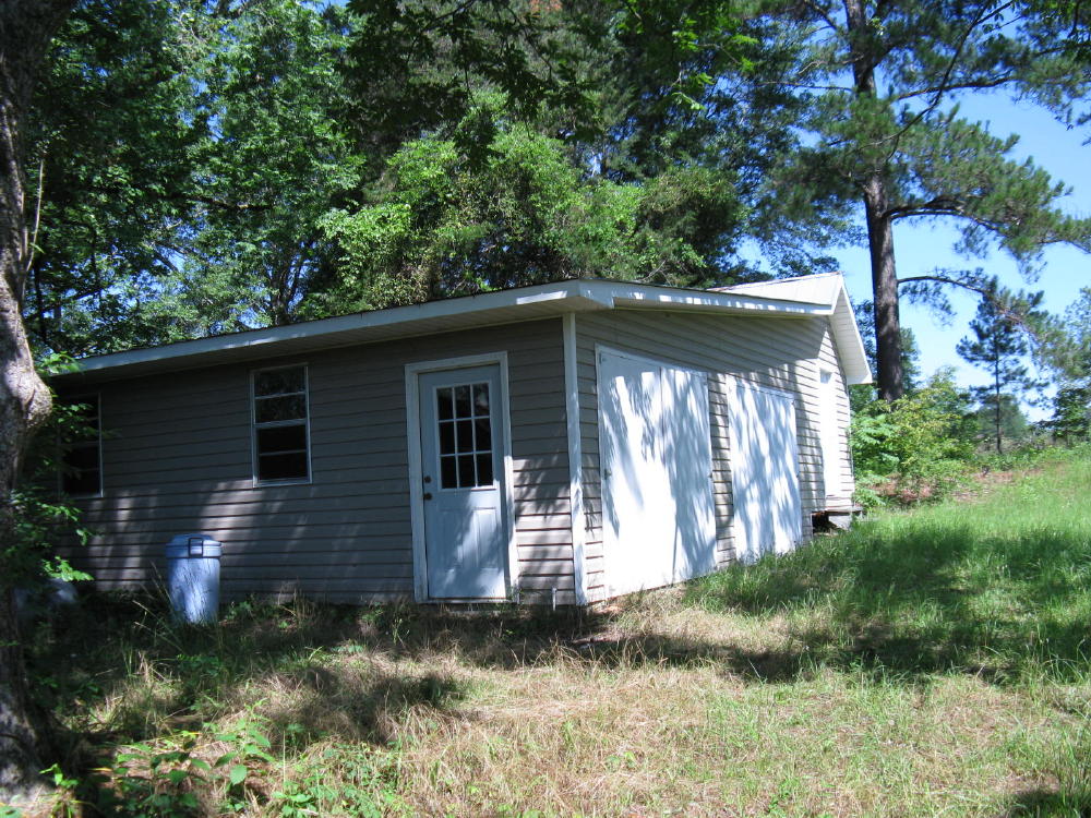 The garage/shop is wired. It has a concrete floor and two car bays.