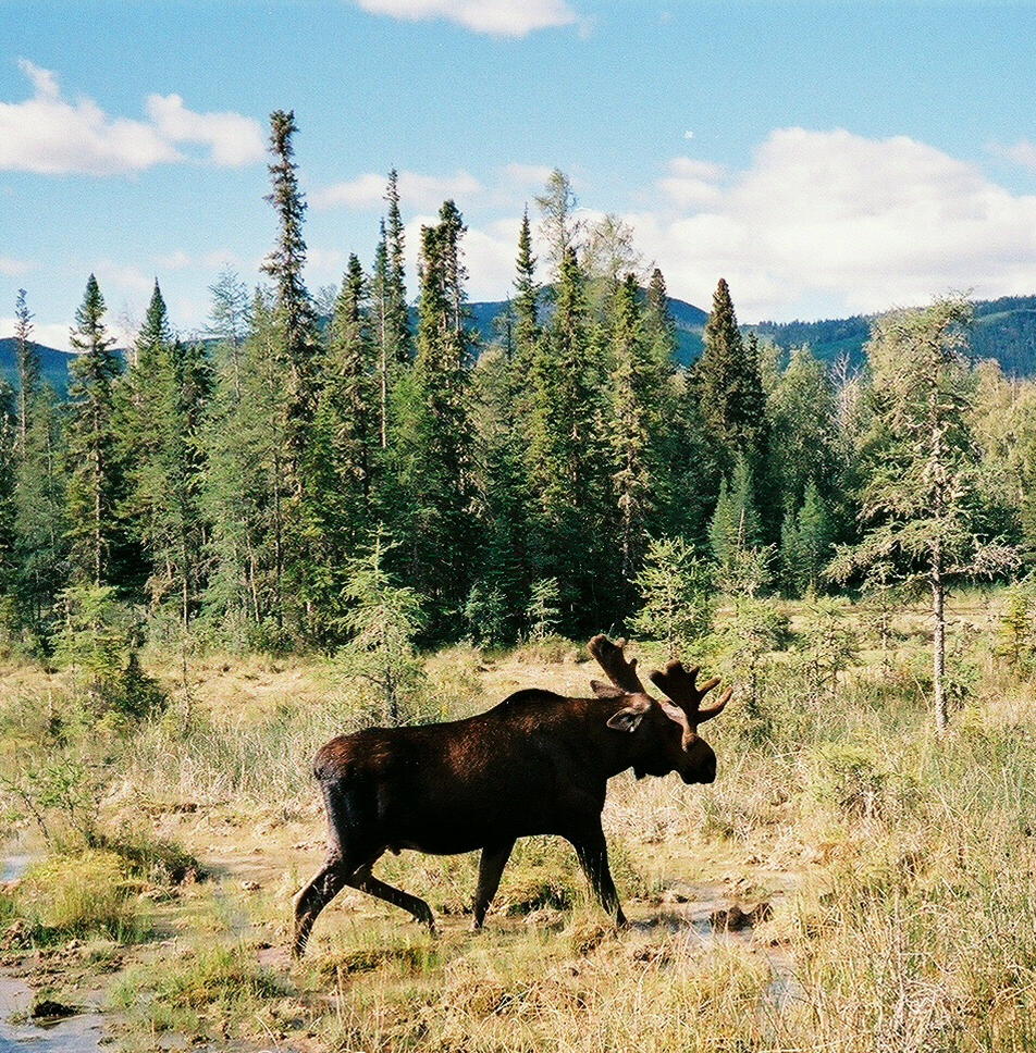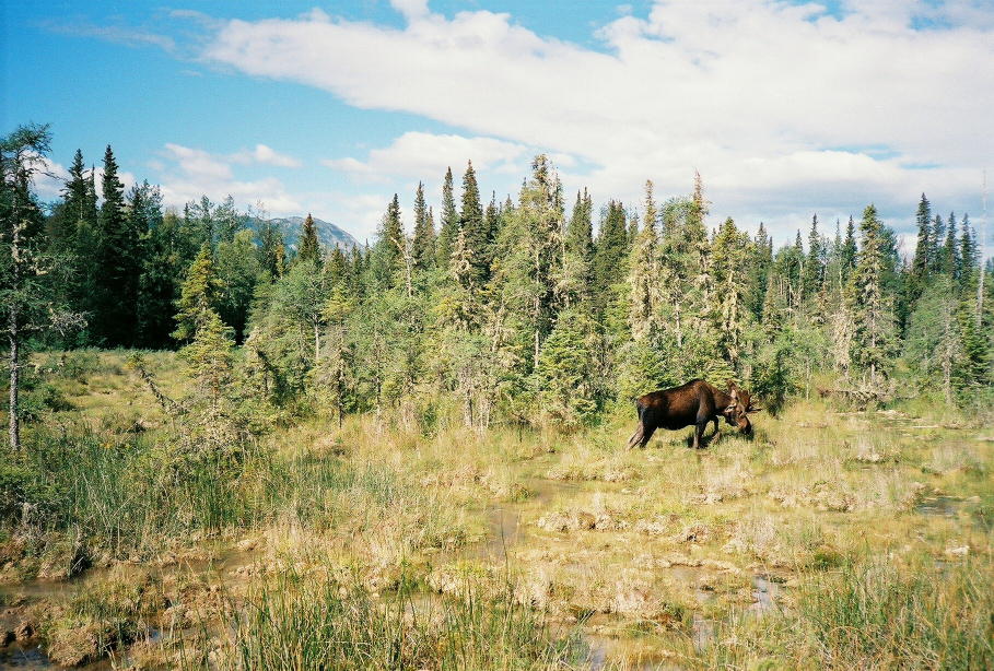 A boardwalk joins the parking lot and the hot springs. I saw a bull moose