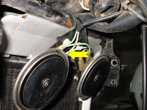 The wire feeding power to the horns had an internal break where shown. The fault location corresponds to point 8 on the simplified wiring diagram. This specific problem is actually fairly common with GL's. The horn wire harness flexes in the wind, and the point of highest mechanical stress is where it attaches to the horn. The failure could have been prevented if a wire tie had been used to secure the cable harness so it would not flex.