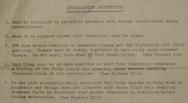 This shows the fork brace, the instruction sheet, and the box it came in. For