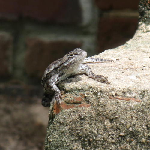 This is Oscar, an eastern fence lizard who lives at the rear porch. He can